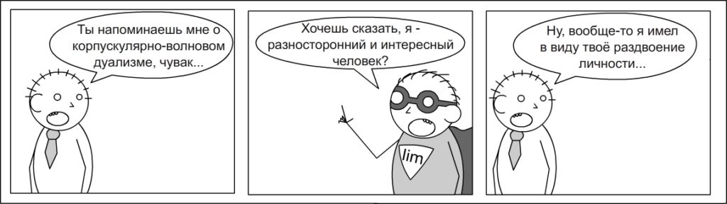 В самой природе мира очень многое обладает свойствами дуализма — к примеру фотон он когда ему удобно волна, а в другой раз частица.
