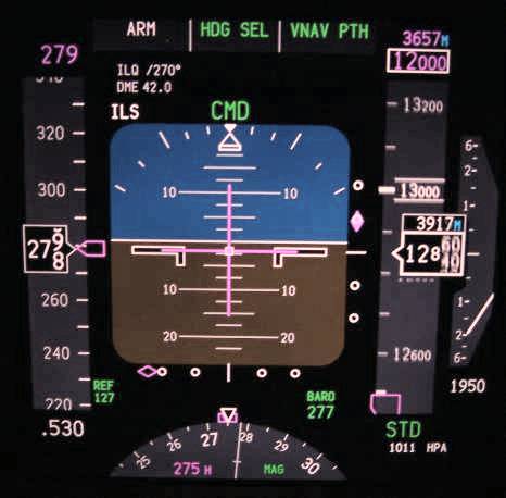 Иногда его еще называют искусственным горизонтом. Он состоит из миниатюрного набора «крыльев» и изображения горизонта. Верхняя часть синего цвета (небо), а нижняя — коричневого. На некоторых сложных самолетах индикатор отображается на дисплее перед пилотом. В старых самолетах он находится в центре верхнего ряда инструментов. На современных авиалайнерах основной индикатор полетных данных (PFD) будет прямо перед вами. Здесь отображается важная информация, такая как приборная скорость полета (IAS) в узлах, скорость относительно земли (GS) в узлах, высота в футах и названия. Также здесь отображается информация, включен ли автопилот. Обычно это обозначается как АР или CMD.