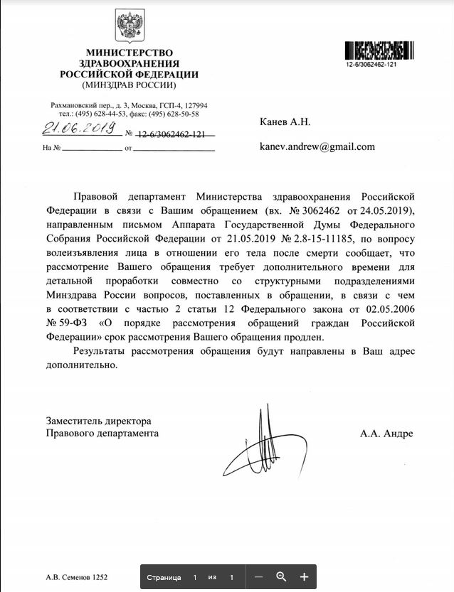 Получен ответ из Министерства Здравоохранения и государственной думы — завещать своё тело для нужд науки законно в этой стране пока не получится.