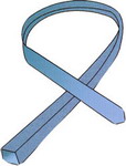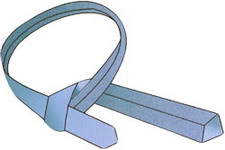 При скрещивании широкий должен быть направлен влево и находиться под узким, причем изнаночной стороной вверх, а узкий должен быть направлен в правую сторону