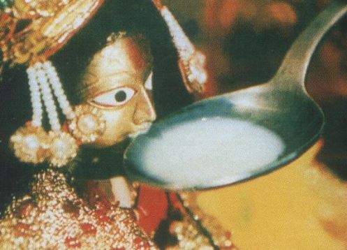 Всё началось с того, что 21 сентября 1995 г. в 2 часа ночи в одном из храмов Ганеша в Нью-Дели раздался звонок и таинственный неизвестный мужской голос сказал: «Ганеш хочет молока. Пожалуйста, напоите его!». Жрец на всякий случай тут же омылся и поднес Божеству молоко, которое на глазах у него сразу исчезло. Восторженный жрец тут же позвонил своему другу, который тоже сразу же предложил молоко своему божеству, и оно тоже исчезло. В четыре утра весь Нью-Дели уже знал о том, что Божества начали пить молоко. У одного жителя Дели даже исчез пакет с молоком из холодильника, на котором стояла статуэтка Ганеша.