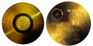 - В 1977 в космос было направлено еще одно необычное послание, записанное на носителе — две позолоченные пластинки в футлярах из анодированного алюминия, закрепленные на борту «Вояджера-1» и «Вояджера-2». Их диаметр составляет 30 см, а драгоценное покрытие должно защитить дорожки от эрозивного действия космической пыли. Вместе с пластиками в каждый футляр упакована игла для воспроизведения записи и фонографическая капсула. На коробке с пластинкой есть пояснения: выгравированная схема установки иглы и преобразования видеосигнала в изображение, данные о скорости воспроизведения звукозаписи, еще одна карта пульсаров, на которой отмечено положение Солнца в Млечном пути, и схема излучения единиц водорода для получения метрических единиц и единиц времени.